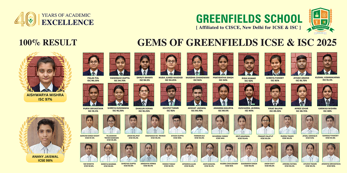 News and Highlights FARAZ’S ARTISTRY: A TESTAMENT TO CREATIVITY AND SKILL! Read More CELEBRATING AAYAT KHAN’S CASIO PLAYING SKILLS! Read More SPOTLIGHT ON STUDENT ARTISTRY: THE INCREDIBLE SKETCHES BY AFIYA QAMAR Read More GREENFIELDS STUDENTS UNLEASH CREATIVITY THROUGH ROBOTICS AND CODING Read More Greenfields School Student Excels in Boxing Tournament! Read More Samalika Singh Strikes Bronze at CISCE Regional Taekwondo Tournament! Read More Greenfields School Celebrates Naman’s Gold Medal Victory at CISCE Regional Boxing Tournament Read More TAEKWONDO TRIUMPH AT THE CISCE ZONAL CHAMPIONSHIP 2024! Read More Congratulations to Palak Gupta, a proud passout student from our batch of 2024 Read More Suhail Ahmed Inspires Greenfield School’s Young Talent Read More Naman Bharti Wins Silver Medal at National Boxing Championship! Read More Laburnum House Emerges Victorious in Inter-House Debate Competition Read More GFS RoboRangers Soar to New Heights! Read More Inter House Kho Kho Tournament at Greenfields School Read More GREENFIELDS SCHOOL LAUNCHES ITS 1ST MUN CONFERENCE Read More DEAR: DAILY 10 MINUTES OF READINGAT GREENFIELDS SCHOOL Read More SPORTS MEET 2024: A DAY OF VICTORYAND UNITY! Read More MEET OUR NEW LEADERS: THE STUDENT COUNCIL STEERING GREENFIELDS SCHOOL TOWARD EXCELLENCE Read More OUR STUDENTS SHINE AT THE SPARK TO START CONTEST! Read More Upcoming Events GFS at Glance Innovations School Activities Sports School Houses ACTIVITY RECAP 2023-24 Beyond Academics Career Counseling Blog Alumni